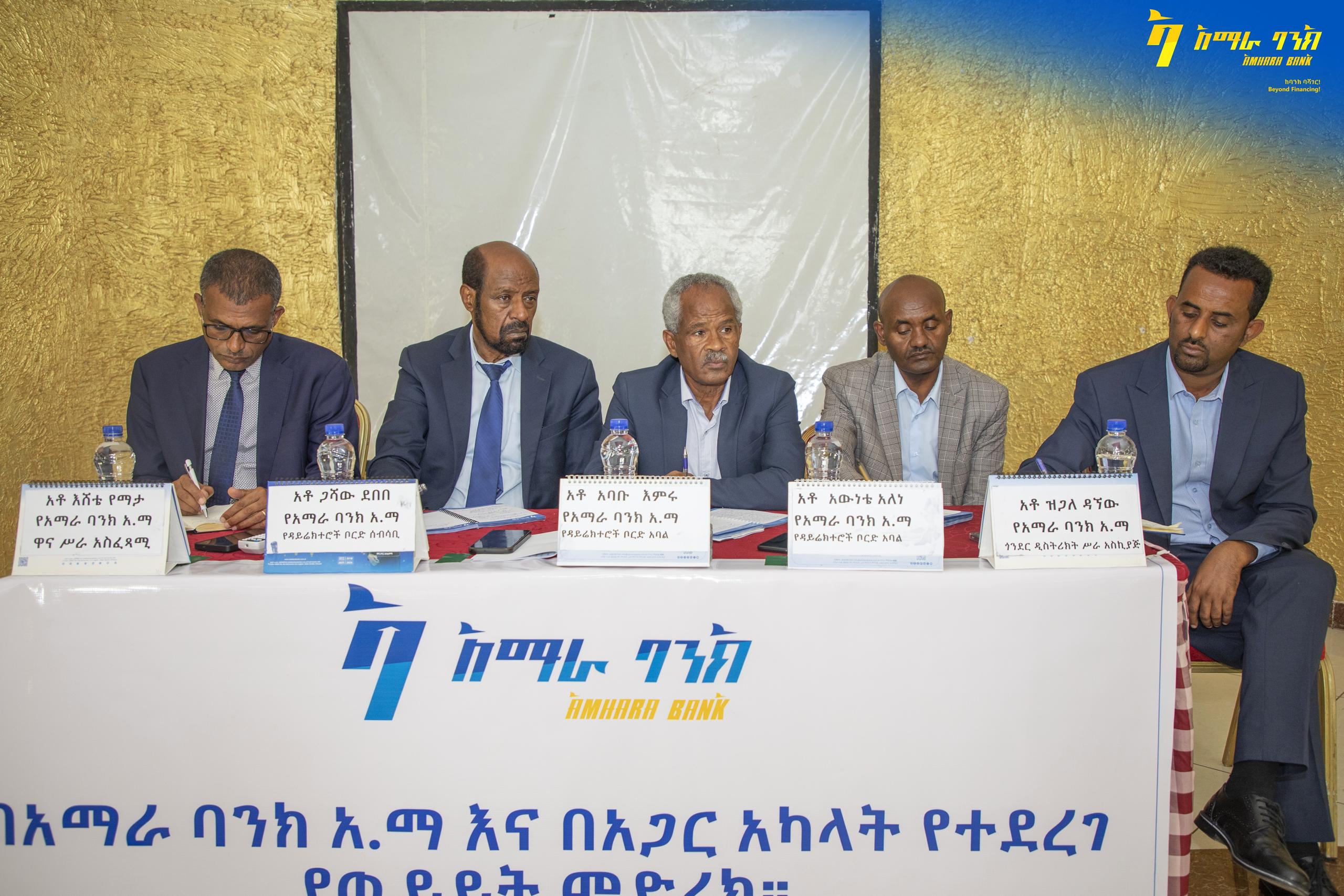የአማራ ባንክ የዳይሬክተሮች ቦርድና ከፍተኛ አመራሮች በጎንደር ከተማ ከተለያዩ ባለድርሻ አካላት ጋር ሁለት ቀናት የቆየ ውይይት አካሄዱ። ውይይቱ ባንኩ እስካሁን ባስመዘገበው ስኬት፣ የወደፊት ስትራቴጂካዊ አቅጣጫዎችን እና ከባለድርሻ አካላት ጋር ያለውን ትብብር ለማጠናከር ያተኮረ ነበር።